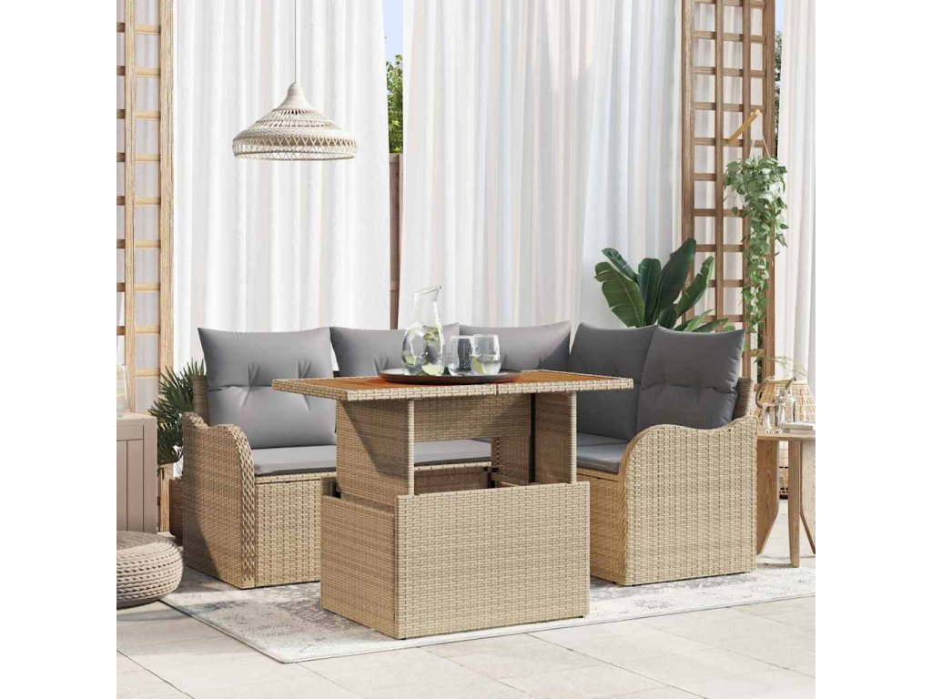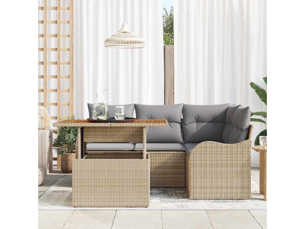 Sada zahradních pohovek s polštářem 5 pcs béžová a světle šedá 3349454