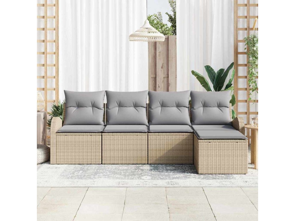 Sada zahradních pohovek s polštářem 5 pcs Béžová Poly ratan 3346000