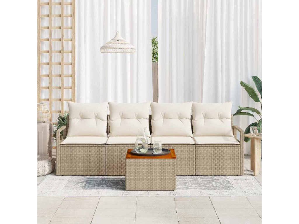 Sada zahradních pohovek s polštářem 5 pcs Béžová Poly ratan 3347638