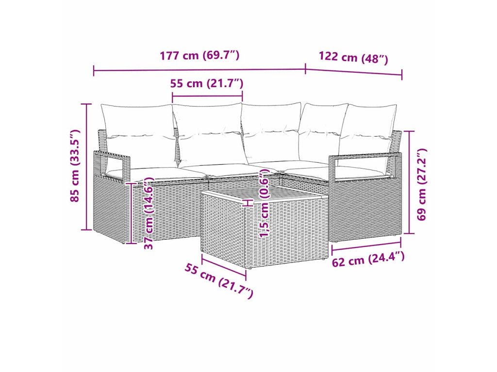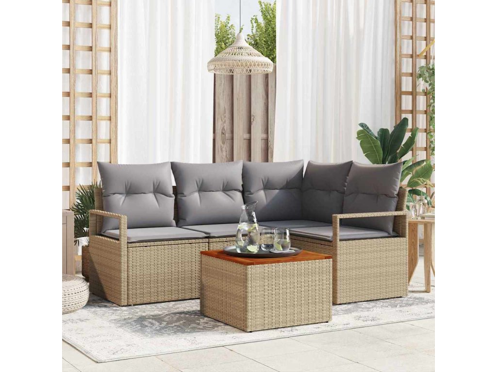 Sada zahradních pohovek s polštářem 5 pcs Béžová Poly ratan 3347700
