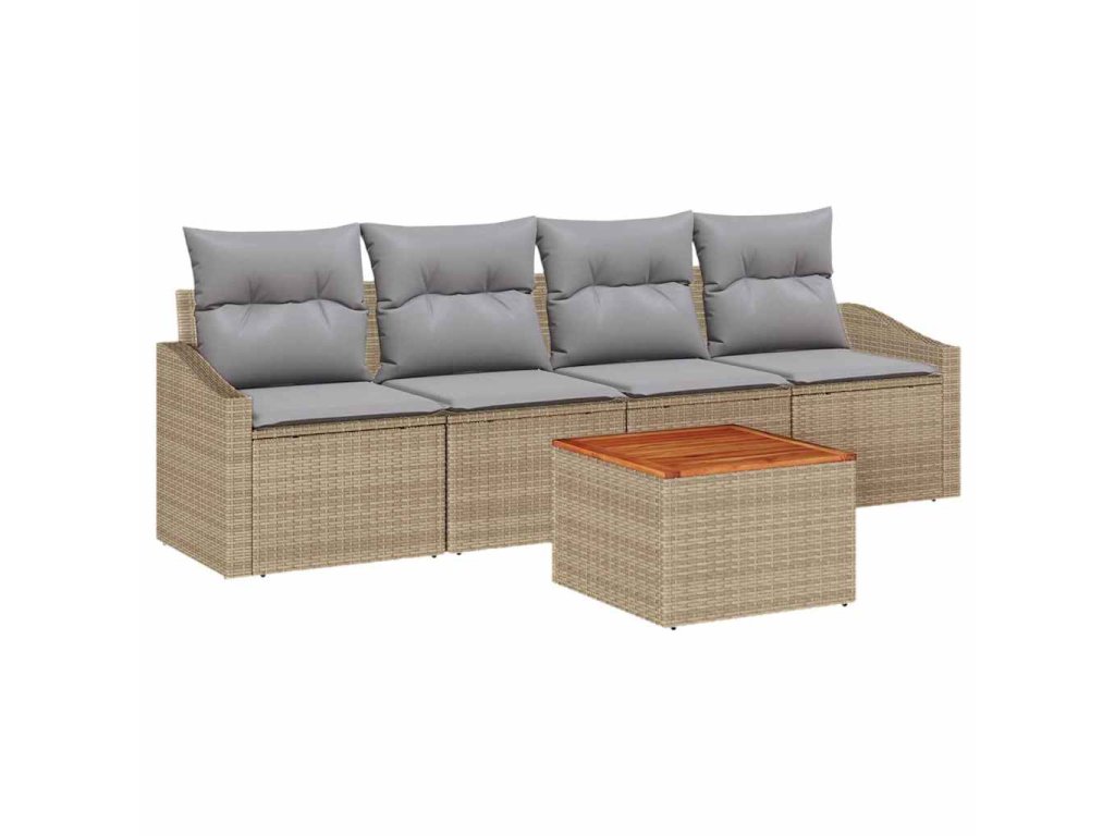 Sada zahradních pohovek s polštářem 5 pcs Béžová Poly ratan 3347763