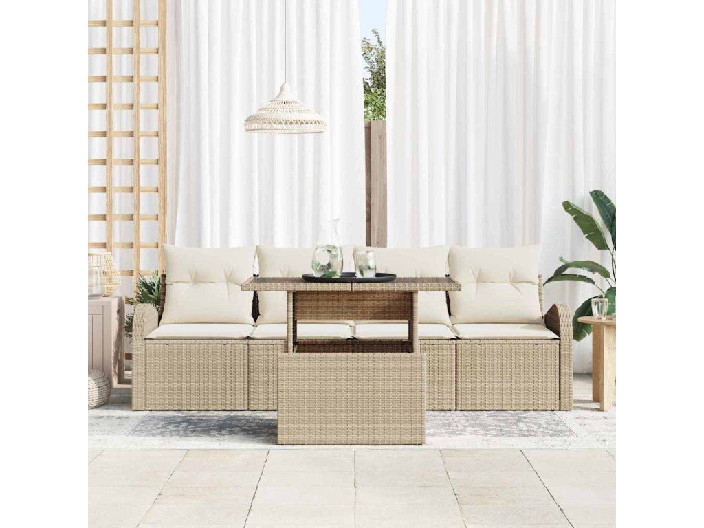 Sada zahradních pohovek s polštářem 5 pcs Béžová Poly Ratan 3357284