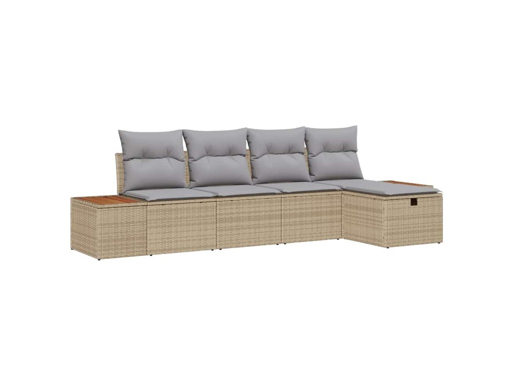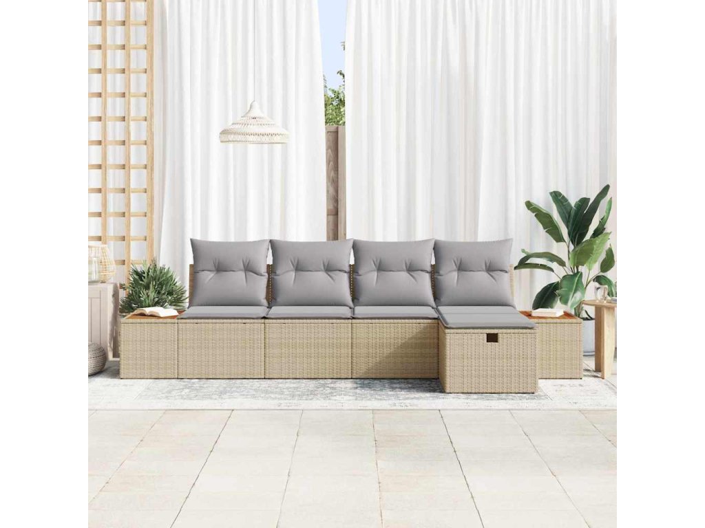 Sada zahradních pohovek s polštářem 5 pcs Béžová Poly ratan 3360954