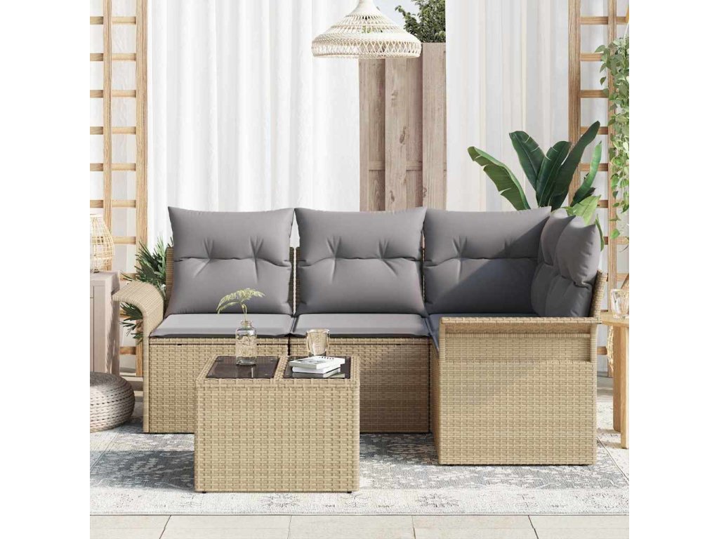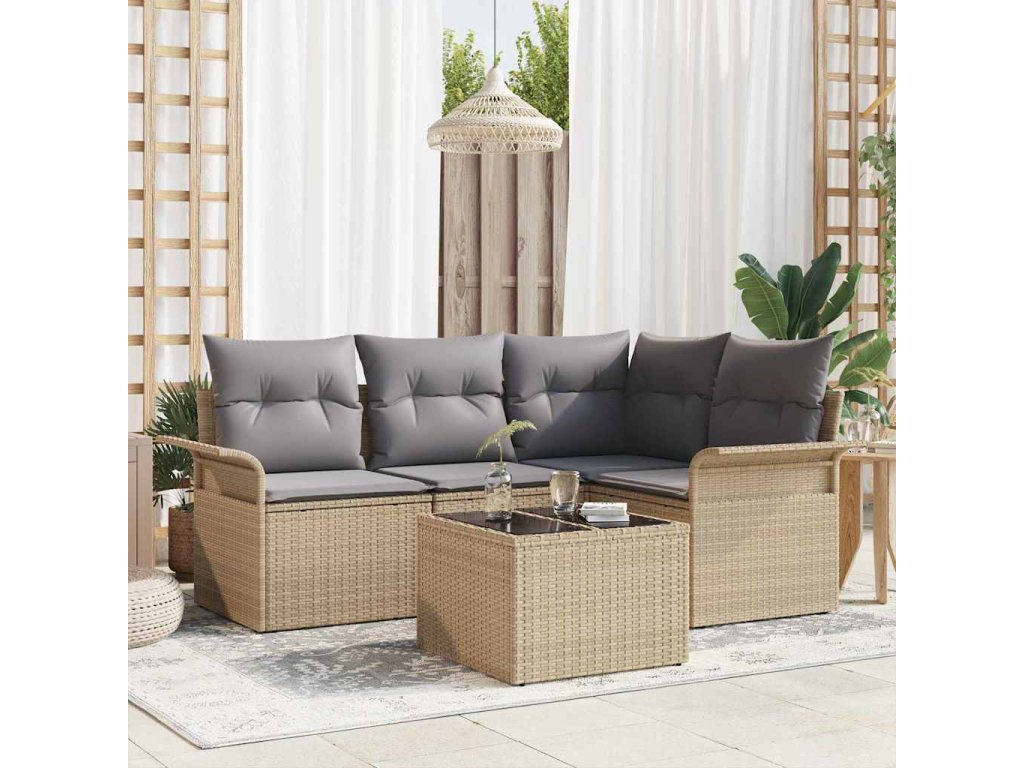 Sada zahradních pohovek s polštářem 5 pcs Béžová polyratan 3345350