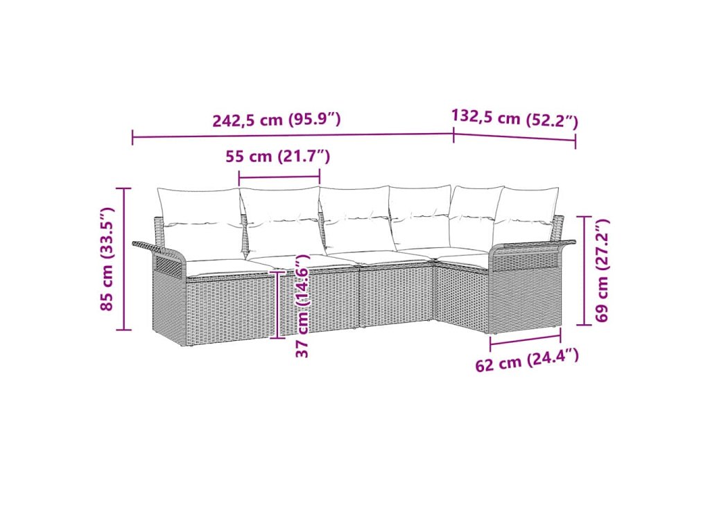 - Celkové rozměry: 242,5 x 132,5 x 85 cm (D x Š x V)
