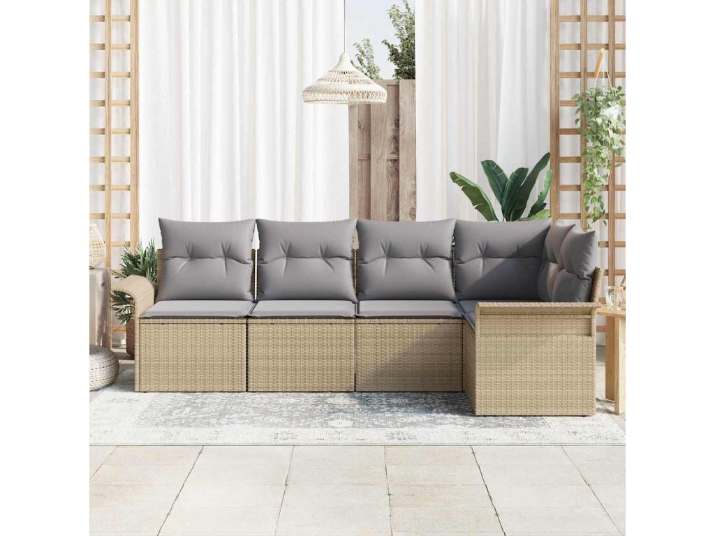 Sada zahradních pohovek s polštářem 5 pcs Béžová polyratan 3345360