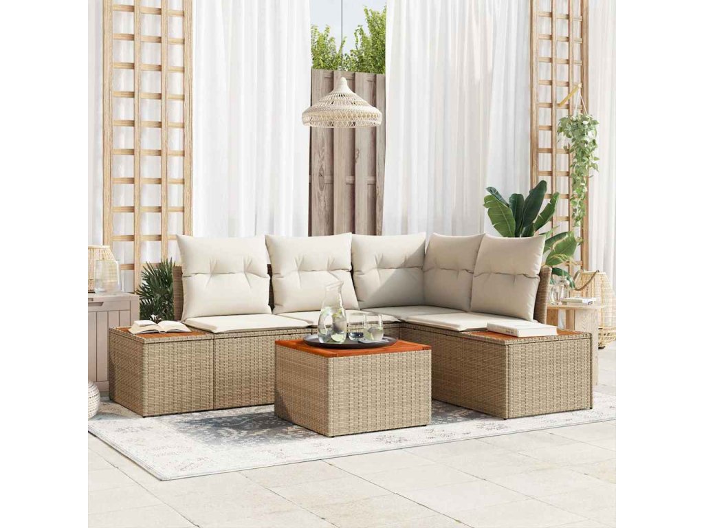 Sada zahradních pohovek s polštářem 5 pcs Béžová polyratan 3348082