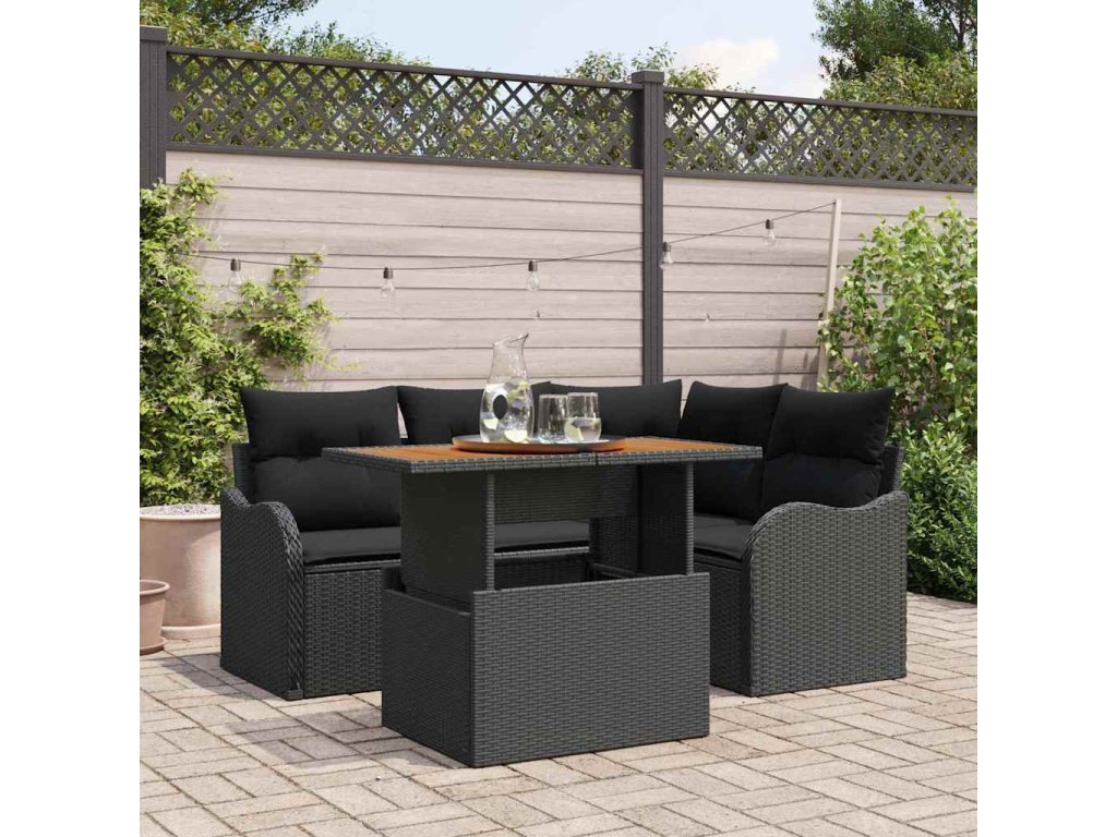 Sada zahradních pohovek s polštářem 5 pcs Černá 3349456