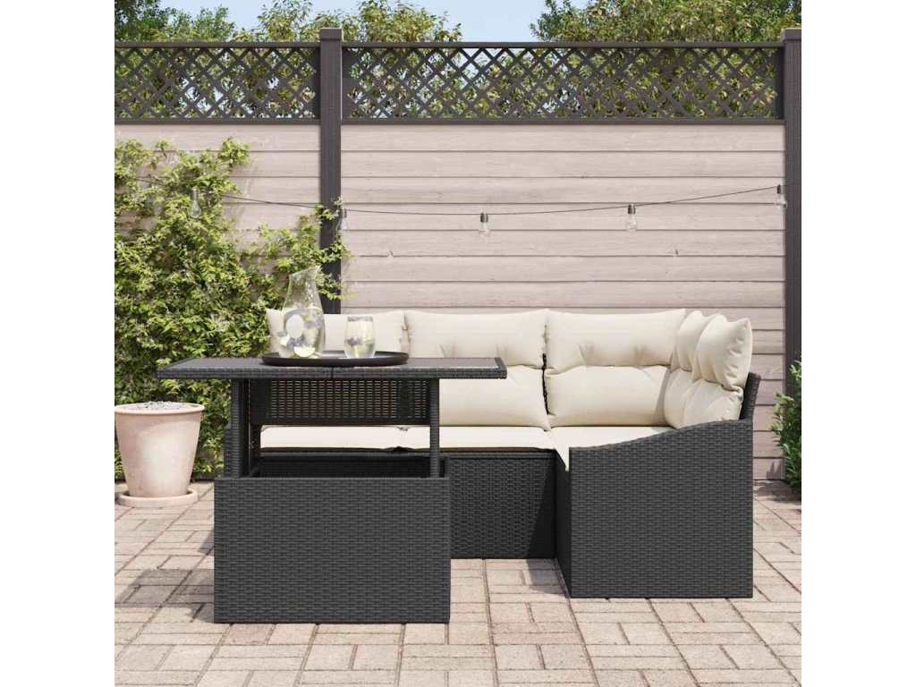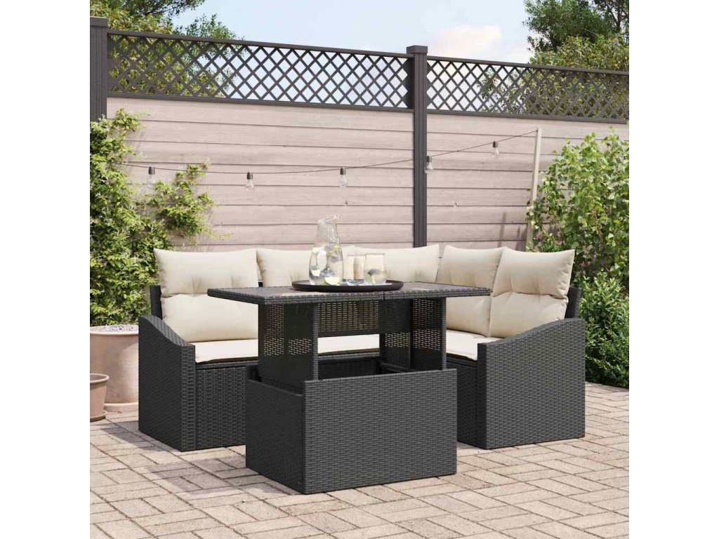 Sada zahradních pohovek s polštářem 5 pcs Černá a krémová 3357730