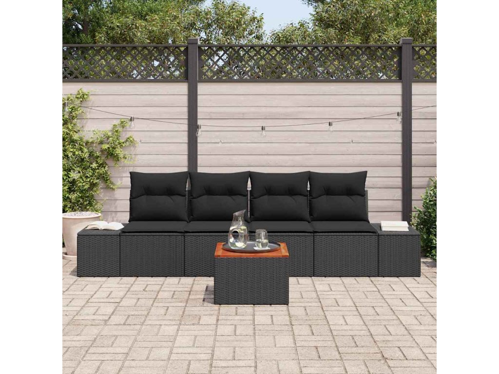 Sada zahradních pohovek s polštářem 5 pcs Černá Poly ratan 3347891