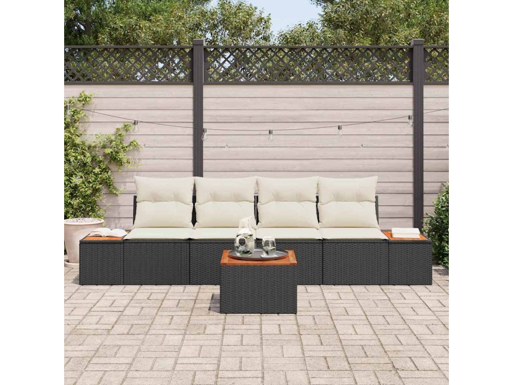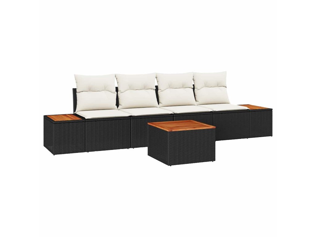 Sada zahradních pohovek s polštářem 5 pcs Černá Poly ratan 3348018