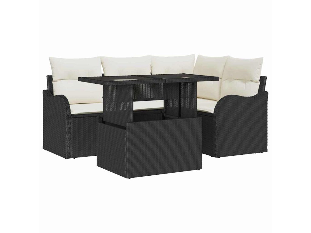 Sada zahradních pohovek s polštářem 5 pcs Černá Poly ratan 3348453