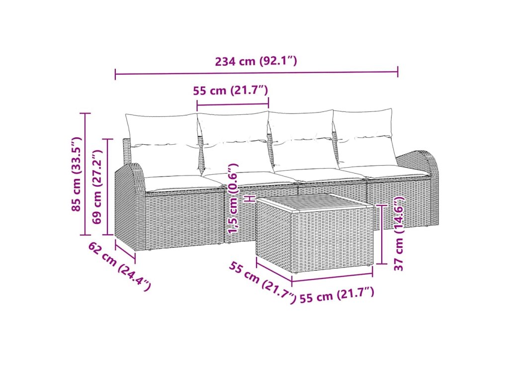 - Navržené komponenty Každá část zahrnuje robustní zadní část z poly ratanu a práškově lakovaného ocelového rámu, což zajišťuje stabilitu a elegantní vzhled. Polštáře mají odnímatelný potah a polyesterovou výplň, což přináší pohodlí a snadnou údržbu.