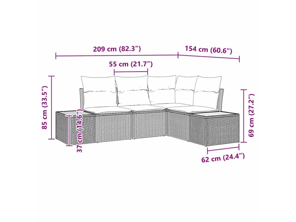 - Materiály: Vyrobený z kvalitního poly ratanu, tento pohovkový set má moderní vzhled a lehký rám, který je ideální do exteriéru. Jeho robustní konstrukce obsahuje práškově lakovanou ocel pro skvělou odolnost, v kombinaci s hladkým akáciovým dřevem poskytuje pohodlí a styl.