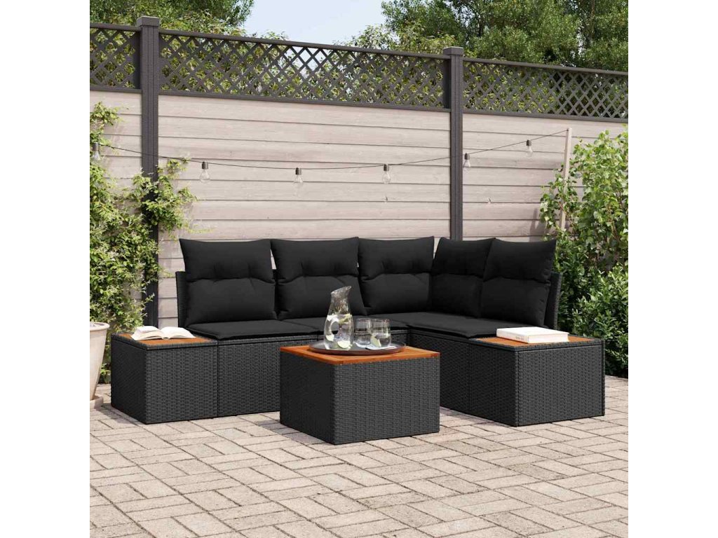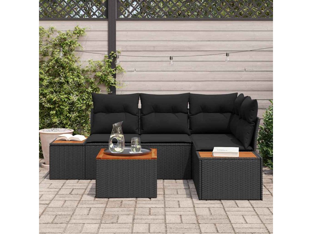 Sada zahradních pohovek s polštářem 5 pcs Černá polyratan 3348079