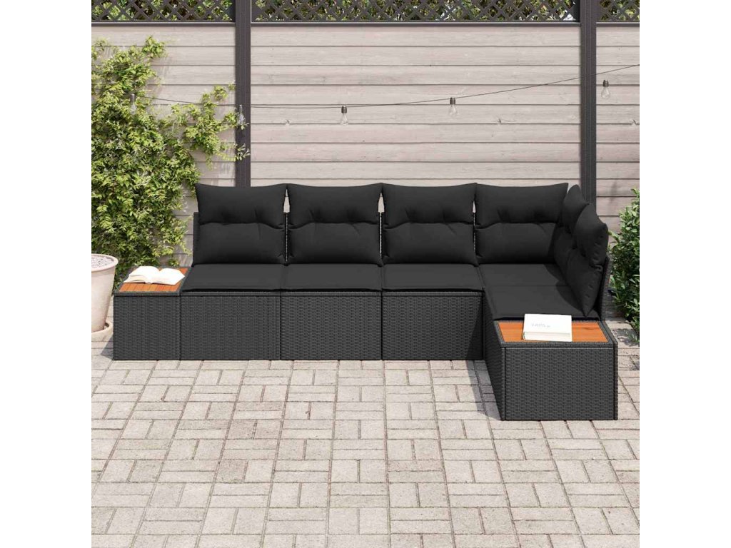 Sada zahradních pohovek s polštářem 5 pcs Černá polyratan 3348084
