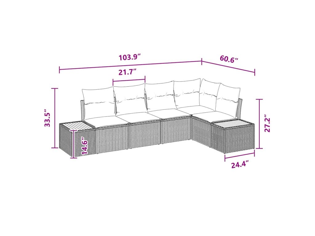 Tato sada zahradních pohovek s polštáři nabízí moderní modulární design, který skvěle zlepší venkovní obytné prostory. Má elegantní styl s minimálním zdobením a zdůrazňuje funkčnost – ideální prvek do zahrad a na terasy. Tento design se snadno propojuje s různými dekory a poskytuje pohodlný prostor na relaxaci nebo společenská setkání.