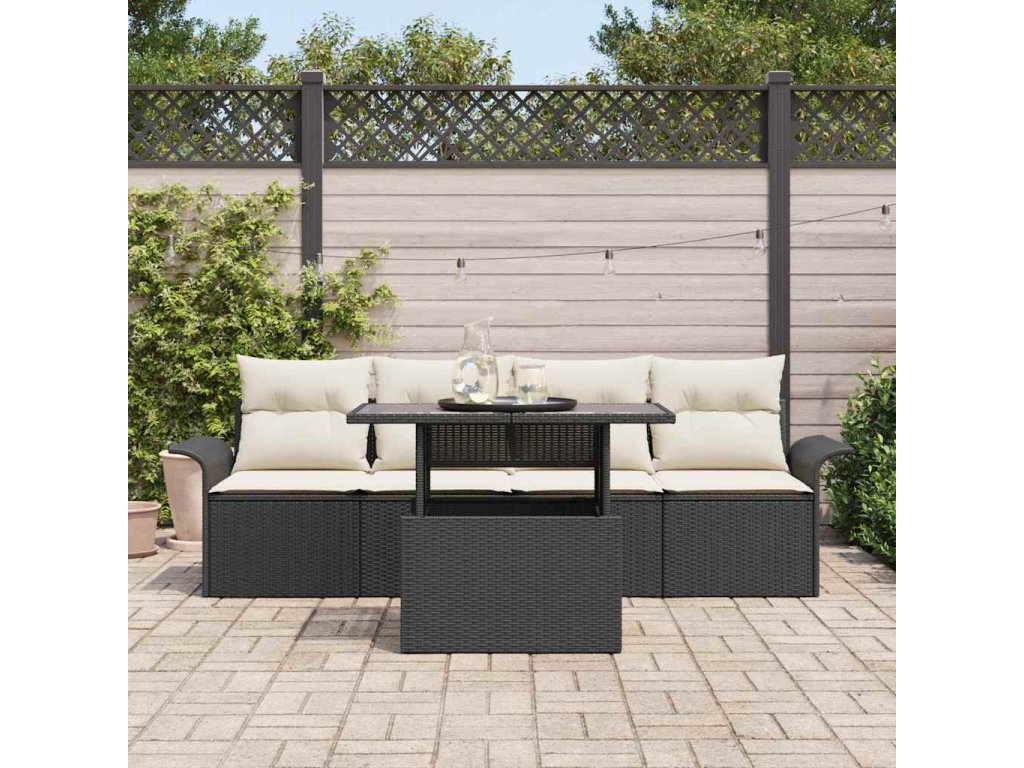 Sada zahradních pohovek s polštářem 5 pcs Černá polyratan 3348183