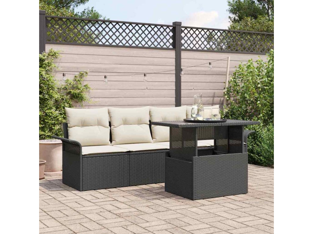 Elegance poly ratanu: Tahle souprava je udělaná z kvalitního poly ratanu, což jí dává stylový vzhled a trvanlivou konstrukci. Poly ratan je známý svou odolností, takže tvůj nábytek vypadá skvěle i za různých podmínek. Pohodlné polštáře zahrnuty: Set zahrnuje venkovní polštáře z odolného polyesteru, které jsou navržené pro komfort a styl. Tyhle měkké polštáře ti poskytnou podporu a pořád si udrží svůj lstivý vzhled i po vystavení venkovním podmínkám. Rám z práškované oceli: Ocelový rám má práškovou úpravu, která mu dává skvělý povrch a chrání ho před venkovními vlivy. Tato úprava nejen že chrání rám, ale poskytuje mu i elegantní vzhled, který se hodí do moderních prostor. Povrch z tvrzeného skla: Stůl s tvrzeným sklem přidává funkční a decentní lesk k celému setu. Je to luxusní prvek a zároveň snadno se udržuje a čistí. Jednoduchá údržba: Aby sis zachoval dobrý vzhled, doporučujeme schovávat polštáře dovnitř při špatném počasí a používat kryt, když nesedíš. Tím usnadňuješ údržbu a zajišťuješ, že si zásadu užíváš dlouho.- Barva: Černá