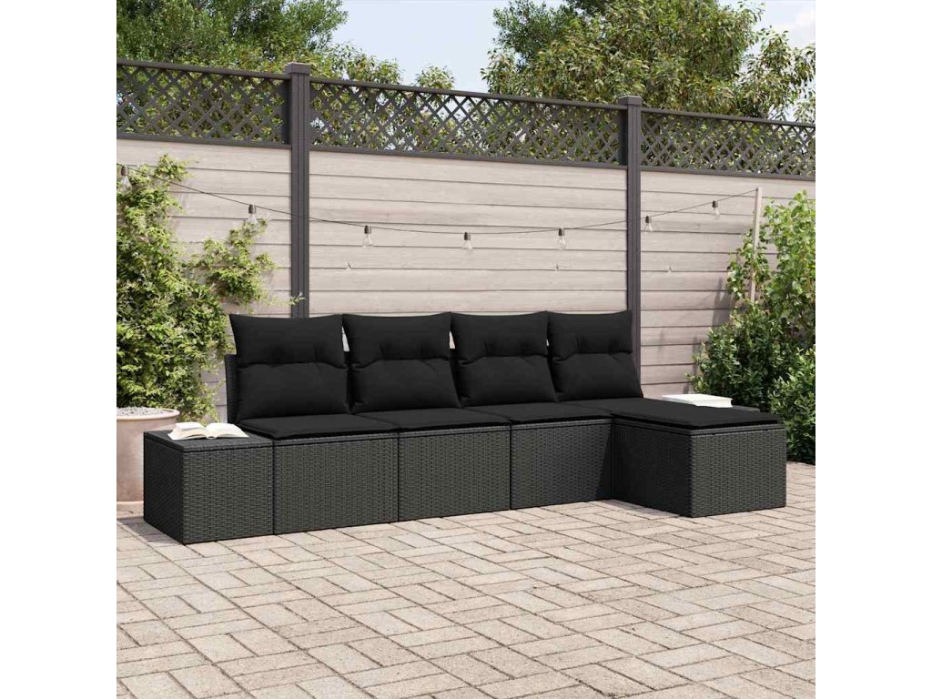 Sada zahradních pohovek s polštářem 5 pcs Černá polyratan 3355692