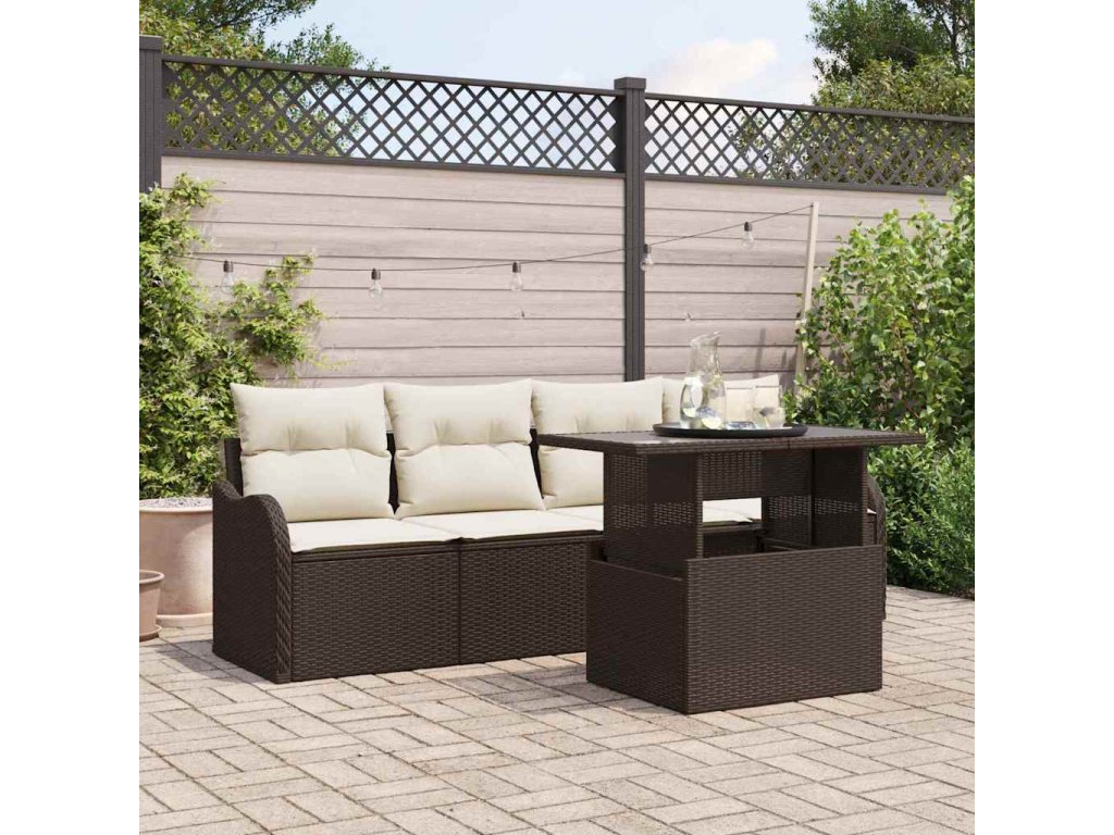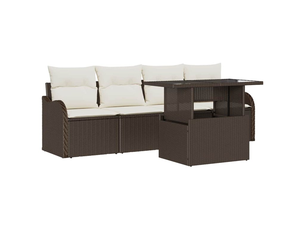 Sada zahradních pohovek s polštářem 5 pcs Hnědá Poly Ratan 3357101
