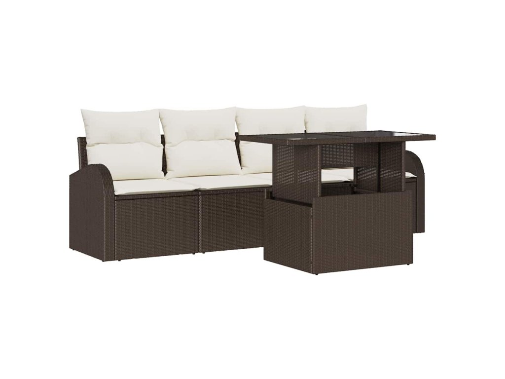 Sada zahradních pohovek s polštářem 5 pcs Hnědá Poly Ratan 3357281