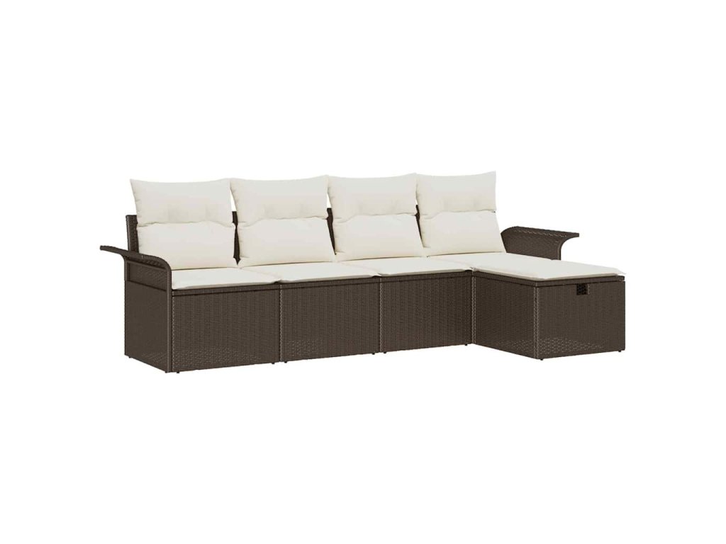Sada zahradních pohovek s polštářem 5 pcs Hnědá Poly ratan 3360189