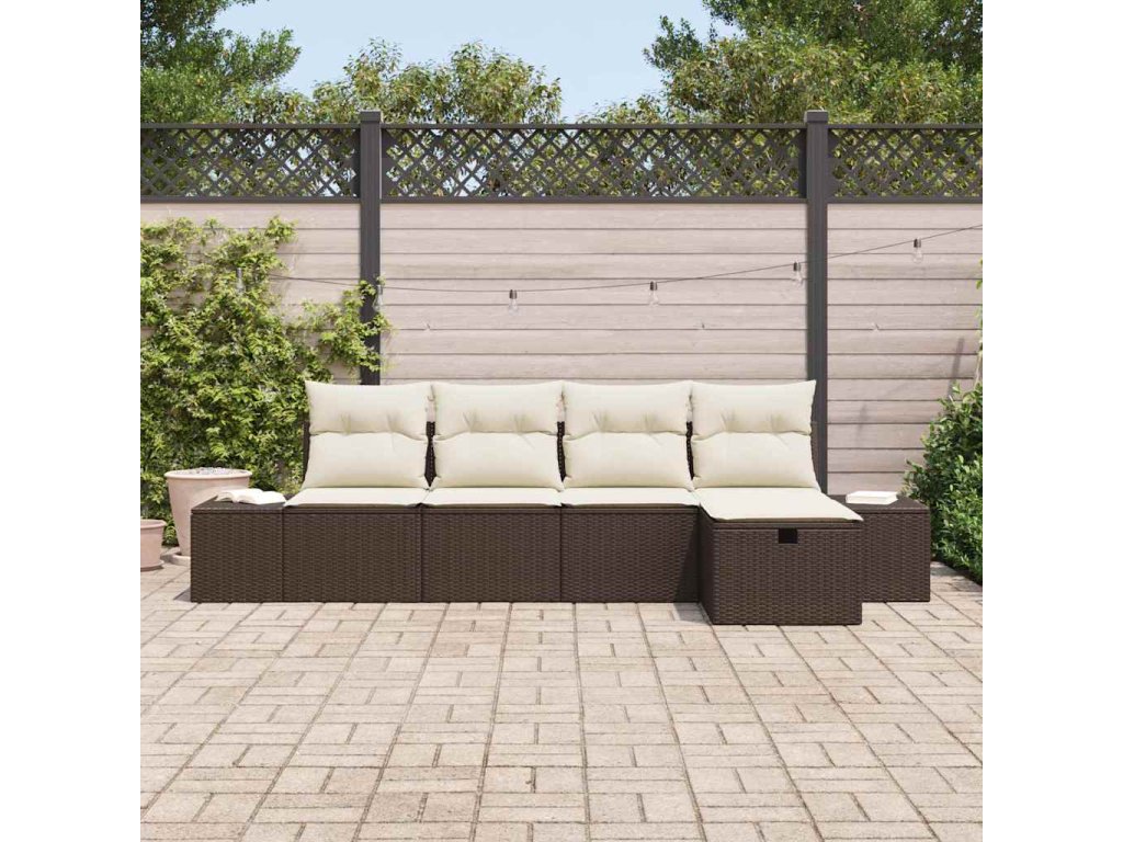 Sada zahradních pohovek s polštářem 5 pcs Hnědá polyratan 3359357