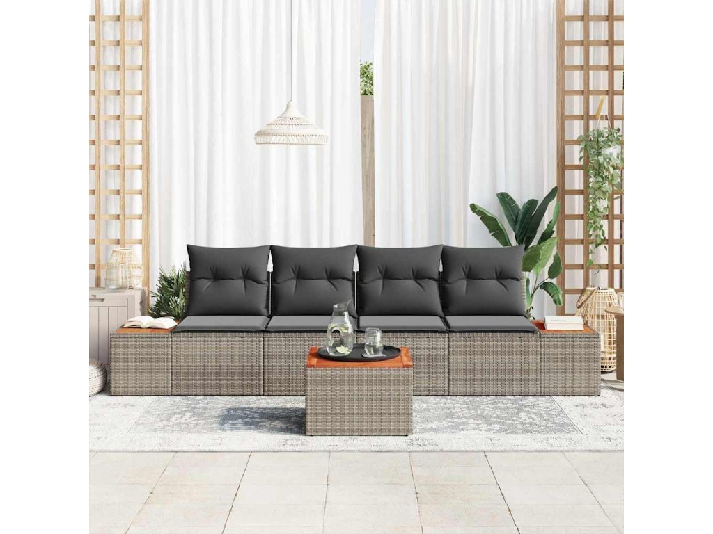 Sada zahradních pohovek s polštářem 5 pcs Šedá Poly ratan 3348020