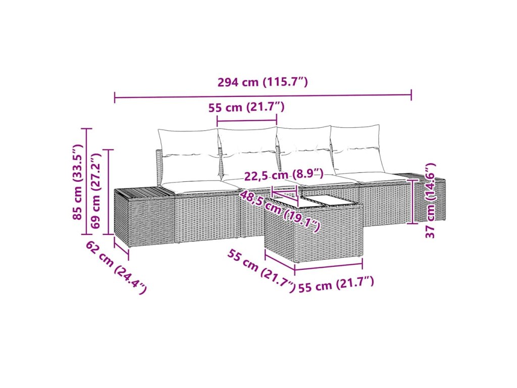 Souprava zahradních sedaček z poly ratanu kombinuje styl a praktičnost a přináší moderní pohled na venkovní nábytek. Je navržena, aby ozdobila zahrady a terasy, a má elegantní čisté linie a minimální ozdoby, což vytváří ideální prostor pro odpočinek a setkání s přáteli. Její atraktivní obdélníkový tvar a modulární povaha zajišťují všestrannost, takže se hodí jak pro menší, tak pro větší prostory. Ať už si chceš užít jarní slunce, nebo plánuješ letní párty, tahle souprava zaručeně dodá každý zahradě šarm.