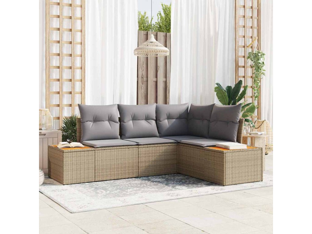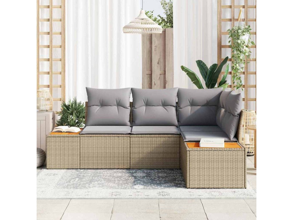 - Materiály: Vyrobený z kvalitního poly ratanu, tento pohovkový set má moderní vzhled a lehký rám, který je ideální do exteriéru. Jeho robustní konstrukce obsahuje práškově lakovanou ocel pro skvělou odolnost, v kombinaci s hladkým akáciovým dřevem poskytuje pohodlí a styl.