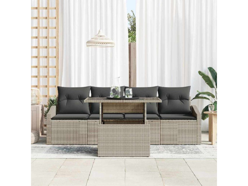 Sada zahradních pohovek s polštářem 5 pcs Světle šedá polyratan 3348908
