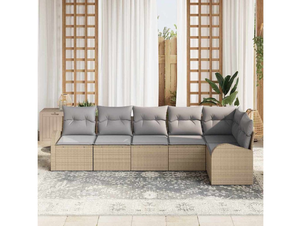 Sada zahradních pohovek s polštářem 6 pcs Béžová Poly ratan 3346060