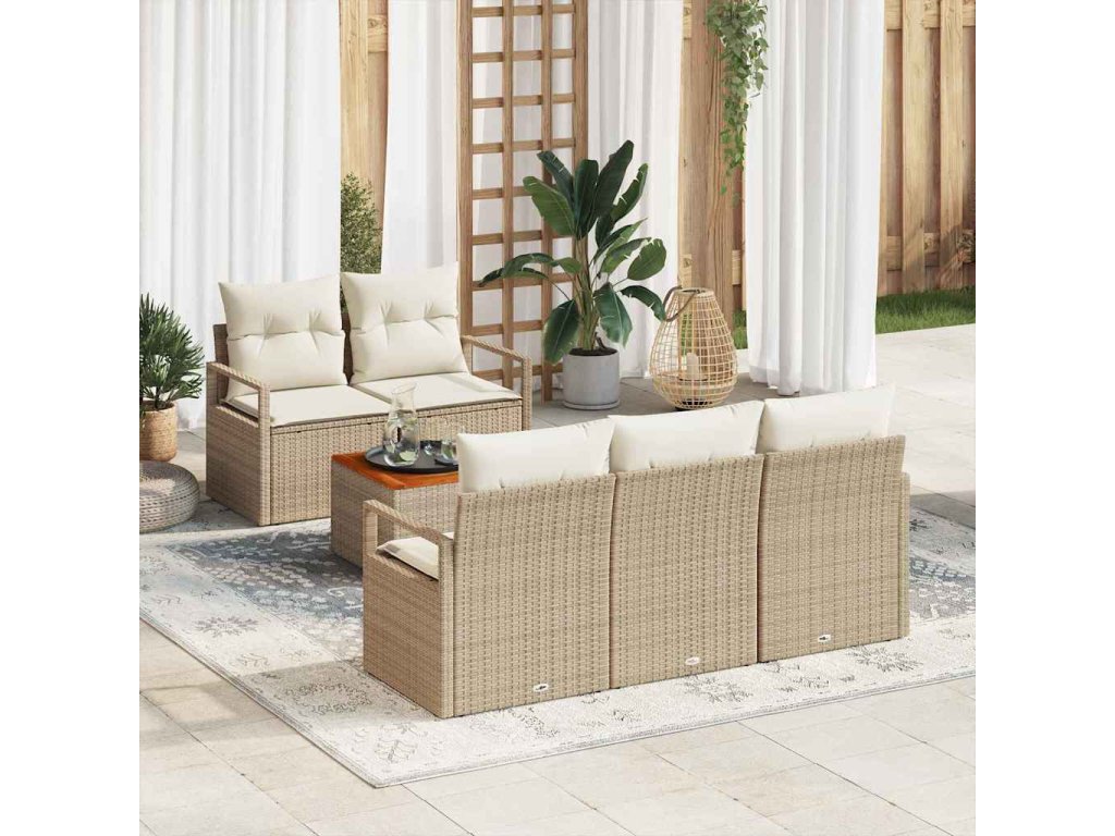 Sada zahradních pohovek s polštářem 6 pcs Béžová Poly ratan 3347645