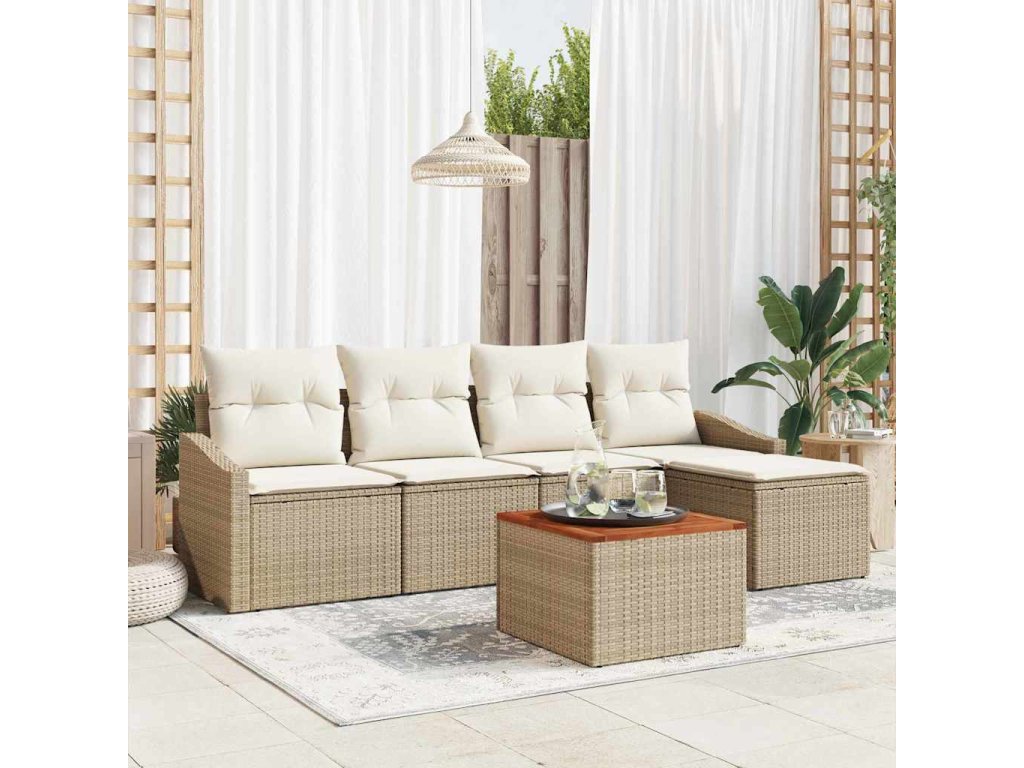 Sada zahradních pohovek s polštářem 6 pcs Béžová Poly ratan 3347820