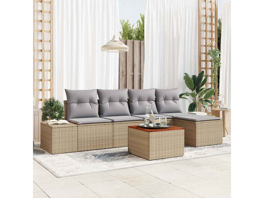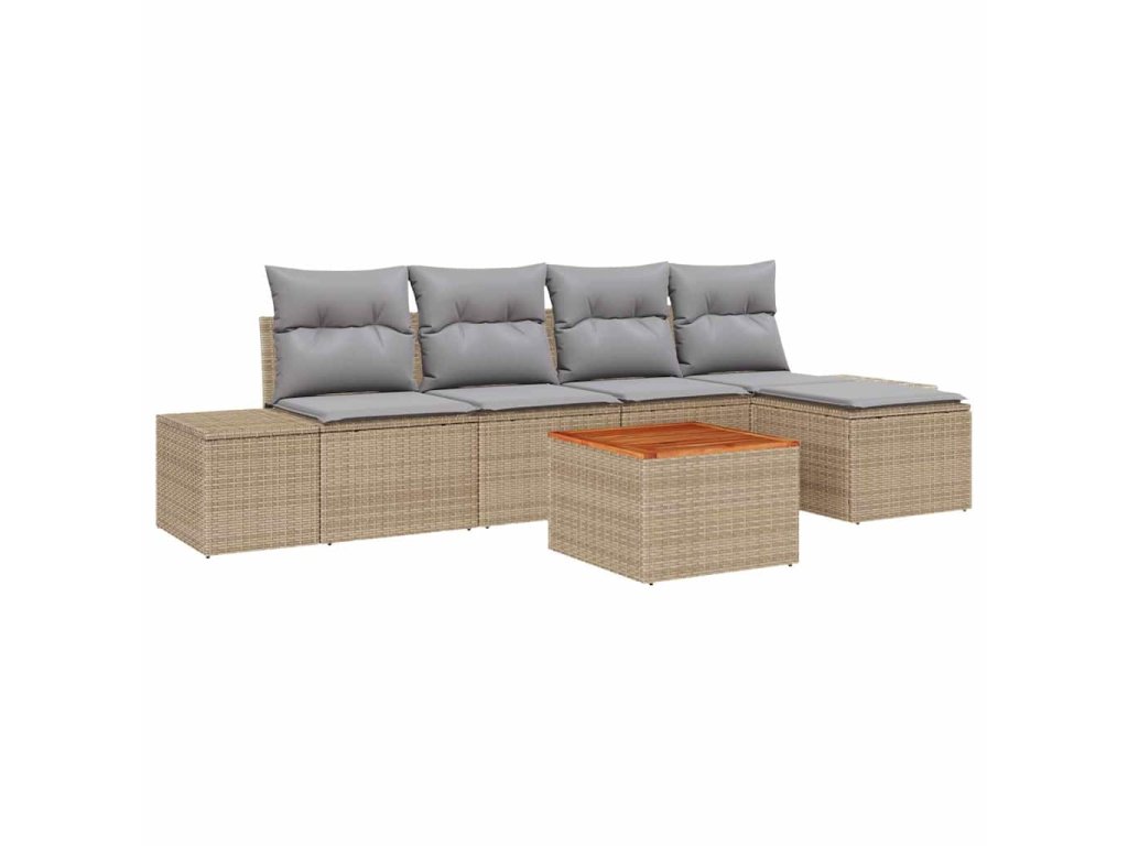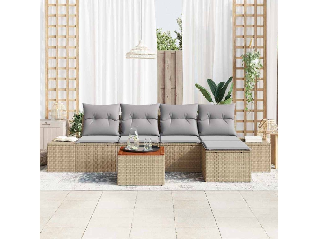 Sada zahradních pohovek s polštářem 6 pcs Béžová Poly ratan 3347945