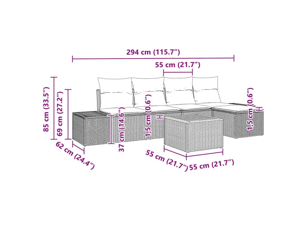 Tento Zahradní Pohovkový Set poskytuje sofistikovanou svatyni pro váš venkovní prostor, bez problémů se mísí s moderním okolím. Díky modulárnímu designu je set znovu uspořádatelný, což vám dává flexibilitu přizpůsobit ho vašim specifickým potřebám a poskytuje pozoruhodný komfort pro různé společenské akce. Pohovkový set vypadá solidně díky svému materiálu Poly Rattan, doplněn měkkými, odolnými polštáři proti povětrnostním vlivům, čímž vytváří stylový a vítaný koutek pro odpočinek během teplých večerů.