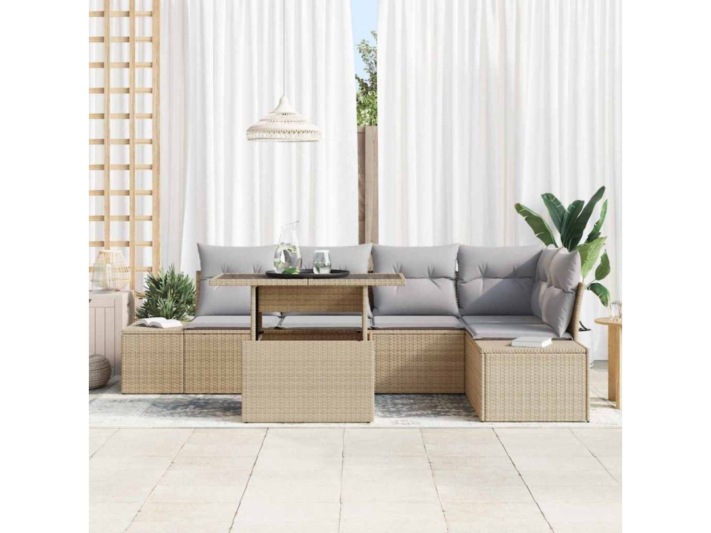 Sada zahradních pohovek s polštářem 6 pcs Béžová Poly ratan 3349186