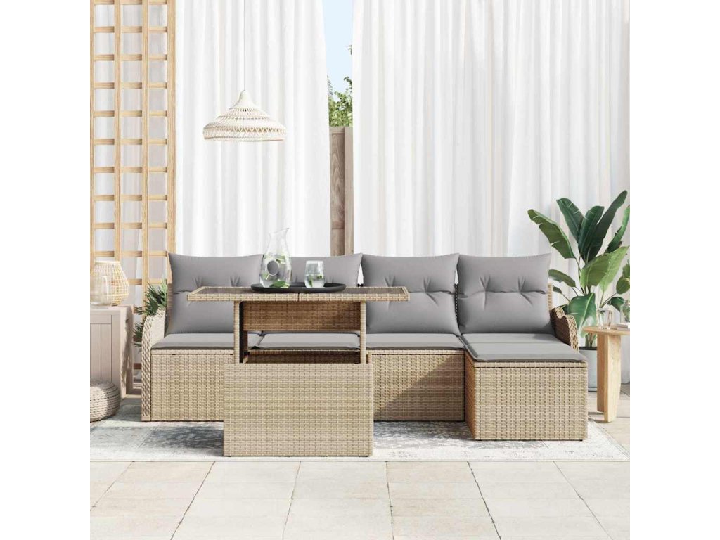 Sada zahradních pohovek s polštářem 6 pcs Béžová Poly Ratan 3357183