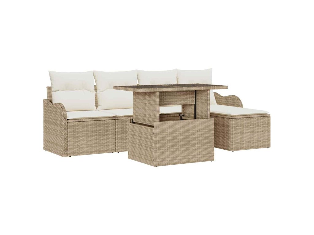 Sada zahradních pohovek s polštářem 6 pcs Béžová Poly Ratan 3357184