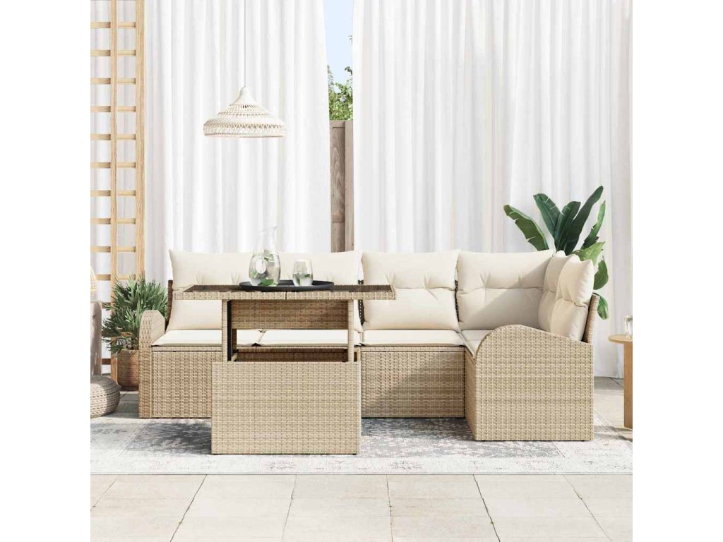 Sada zahradních pohovek s polštářem 6 pcs Béžová Poly ratan 3357384