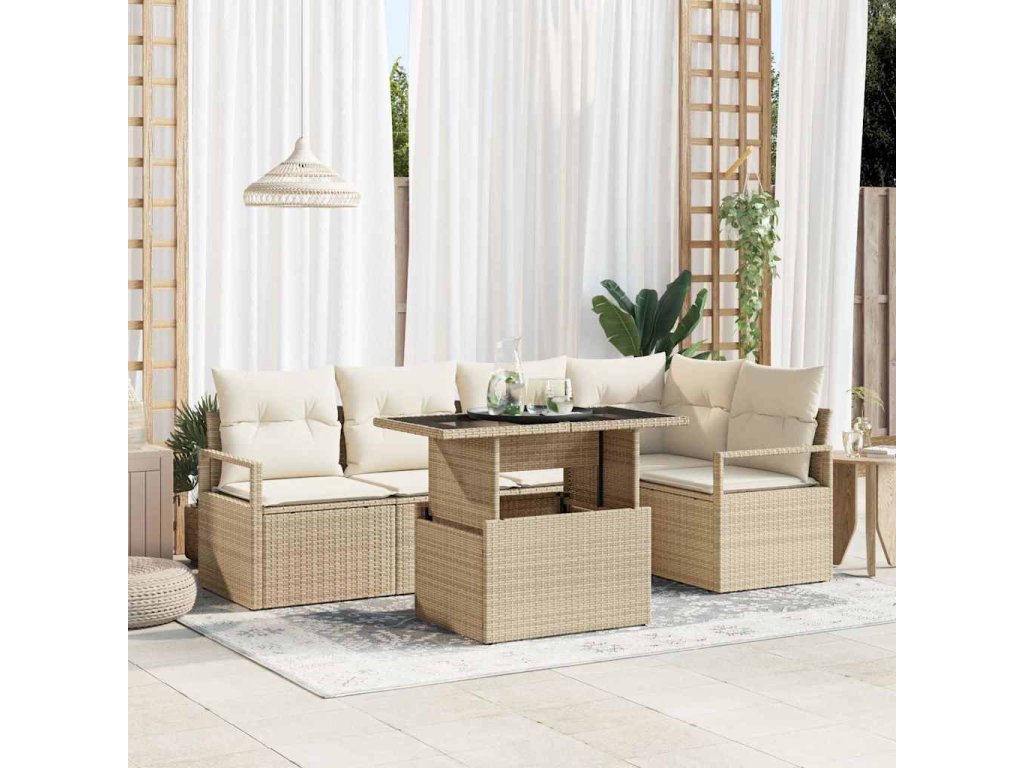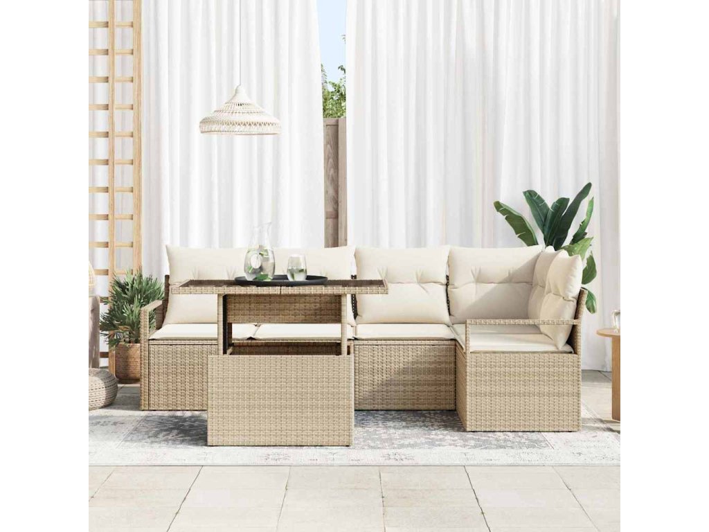 Sada zahradních pohovek s polštářem 6 pcs Béžová Poly ratan 3357564