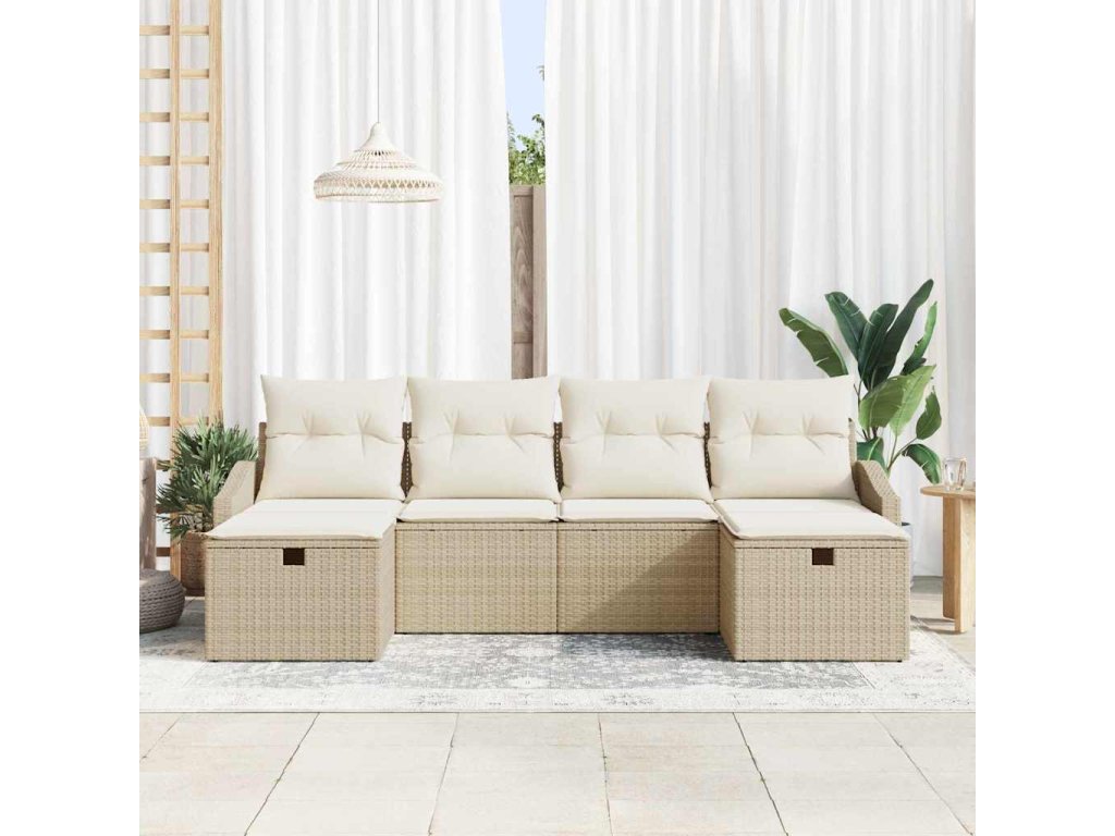 Sada zahradních pohovek s polštářem 6 pcs Béžová Poly ratan 3359320