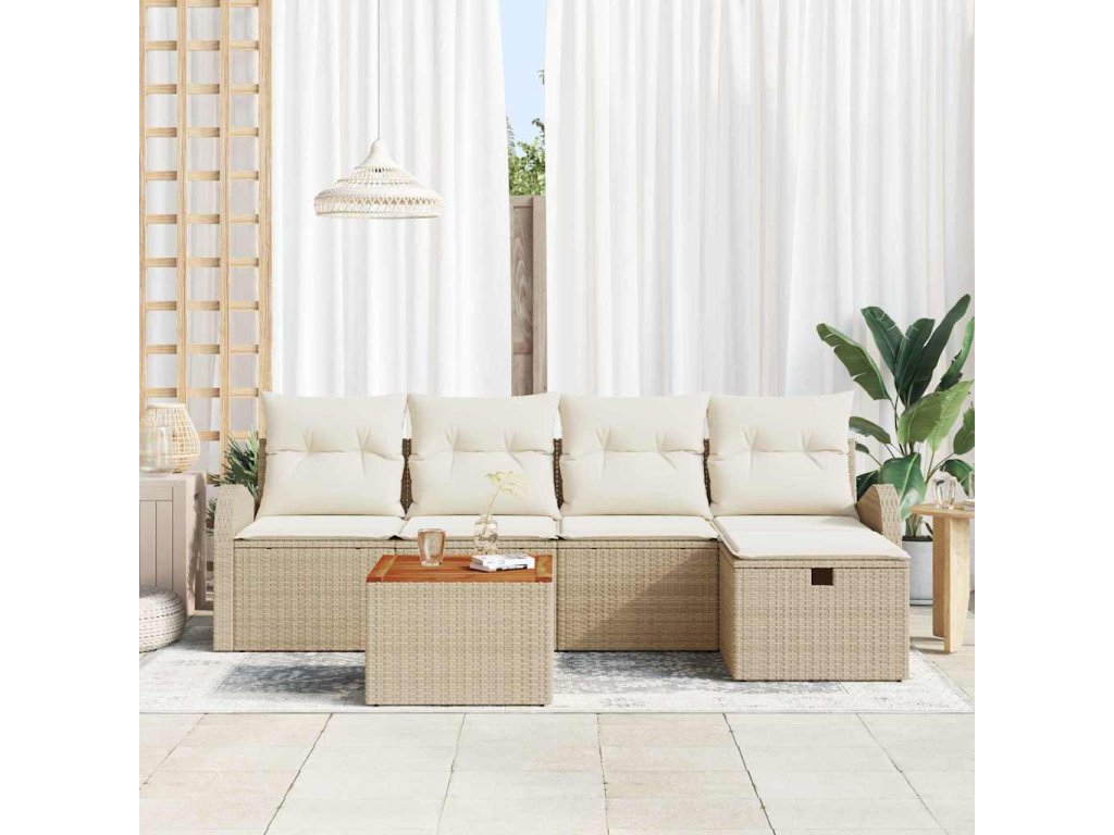 Sada zahradních pohovek s polštářem 6 pcs Béžová Poly ratan 3359505