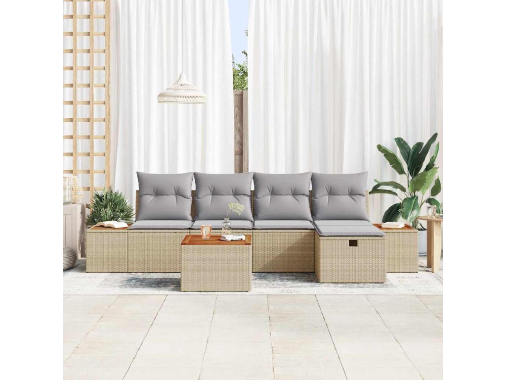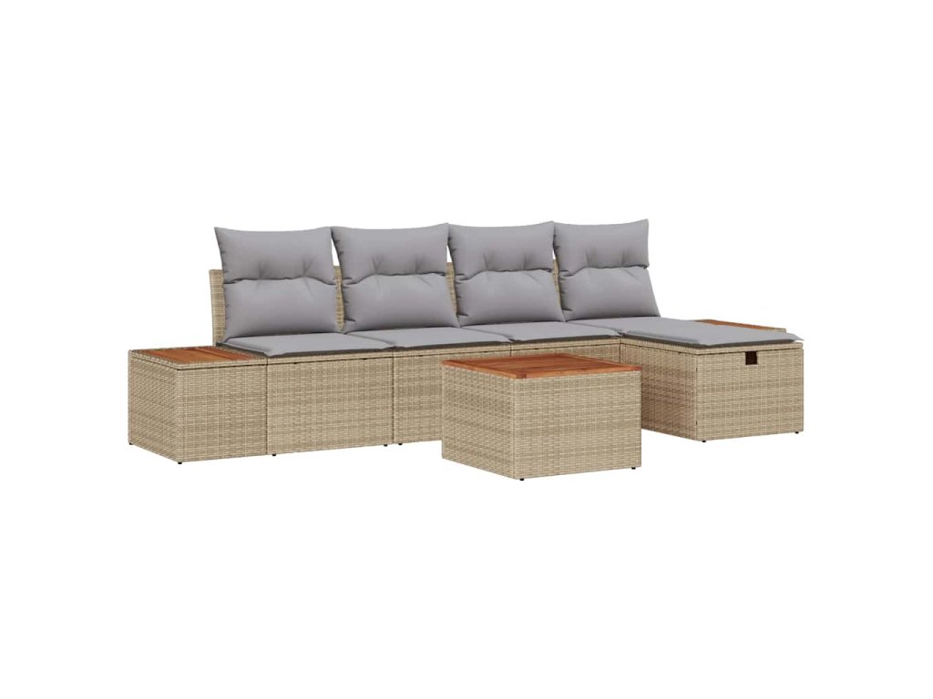 Sada zahradních pohovek s polštářem 6 pcs Béžová Poly ratan 3359627
