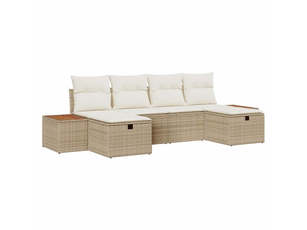 Sada zahradních pohovek s polštářem 6 pcs Béžová Poly ratan 3359653