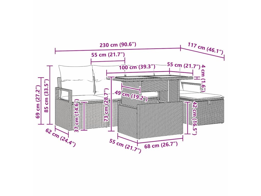 - Odolný poly ratanový materiál: Tato sedací souprava je z pevného poly ratanového vlákna, známého svým stylovým vzhledem a odolností. Vydrží venkovní počasí a tvůj nábytek tak zůstane hvězdou zahrady nebo terasy.