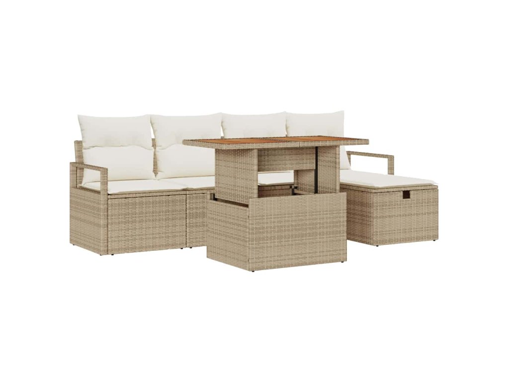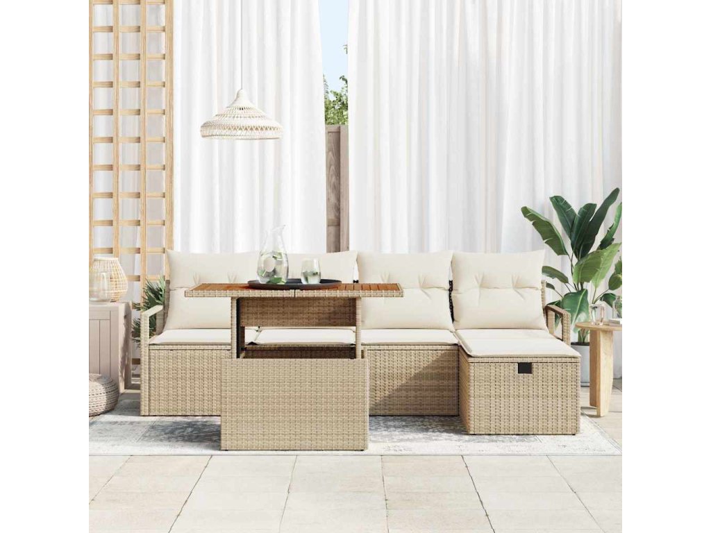 Sada zahradních pohovek s polštářem 6 pcs Béžová Poly ratan 3359991