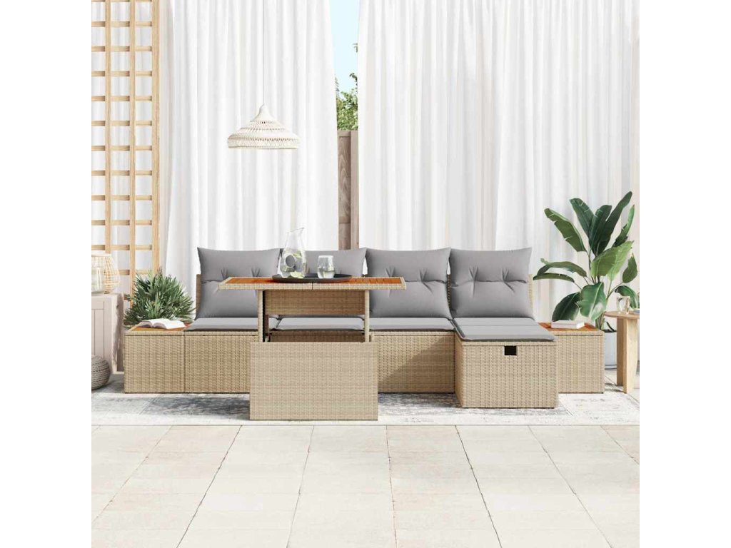 Sada zahradních pohovek s polštářem 6 pcs Béžová Poly ratan 3360075