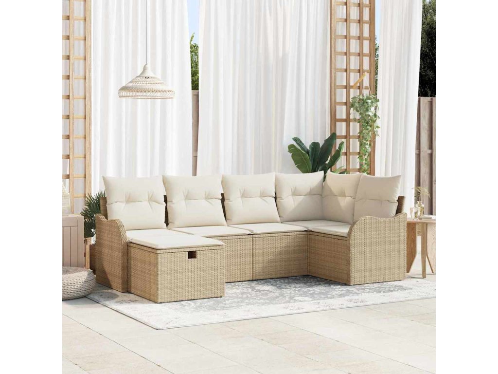 Sada zahradních pohovek s polštářem 6 pcs Béžová Poly ratan 3360312